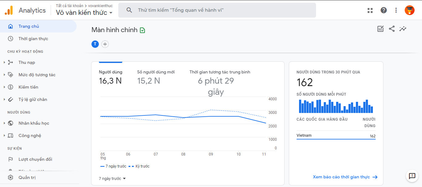 Sau đây là bảng báo cáo lưu lương truy cập trong 7 ngày của trang blog Vovankienthuc.com: